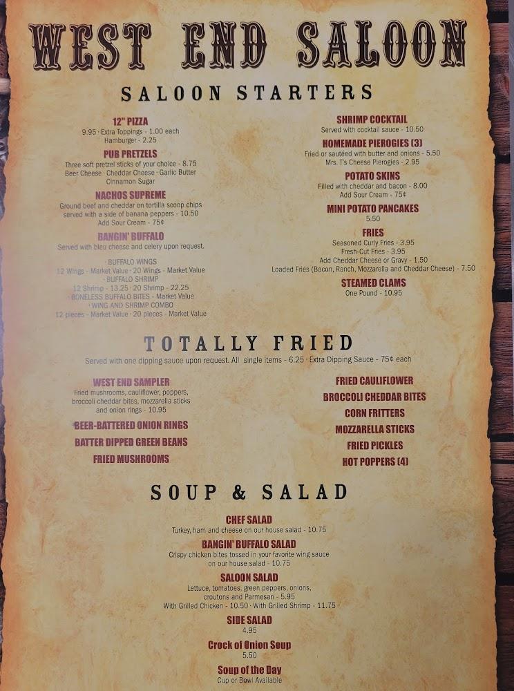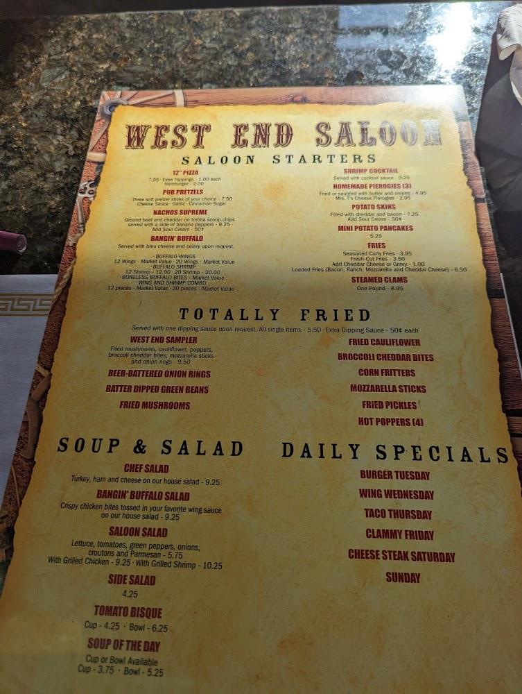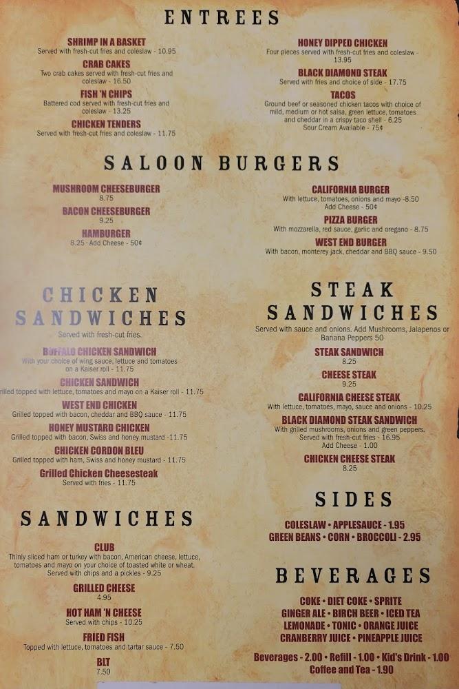 Welcome to the West End Saloon, your go-to spot for authentic home-style cooking and a warm, inviting atmosphere! Nestled in the heart of Palmerton, our hidden gem features a spacious outdoor dining area, perfect for enjoying classic comfort food and delectable homemade cheesecakes under the sun. Indulge in our extensive menu of hearty entrees, tasty appetizers, and handcrafted cocktails, along with a selection of local beers and rotating drafts. Whether you're seeking a casual meal, a family gathering, or just a relaxing outing with friends, the West End Saloon is the ideal destination for every occasion!